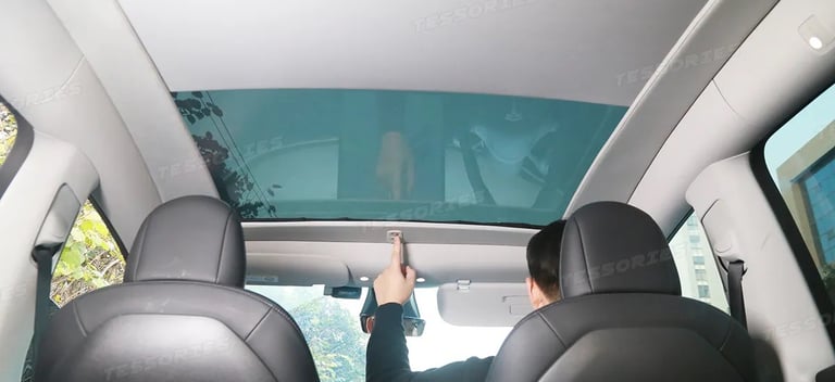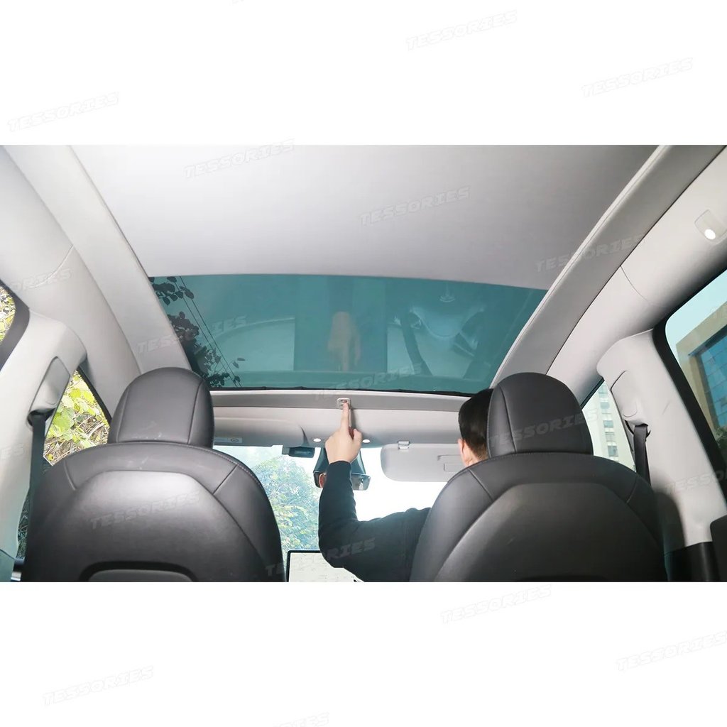 Experience the pinnacle of convenience and comfort with our electric sunshade, tailored exclusively for your Tesla Model Y. Its ultra-slim frame seamlessly integrates with the car's modern interior while effectively shielding your sunroof from the scorching sun on hot days. When you don't need it, the sunshade maintains full visibility, letting you relish the expansive sky above. Operating the sunshade is a breeze; simply press a button or use the voice control feature, making it effortless to adjust to your preference. Enjoy the perfect blend of luxury and innovation in your Tesla Model Y!