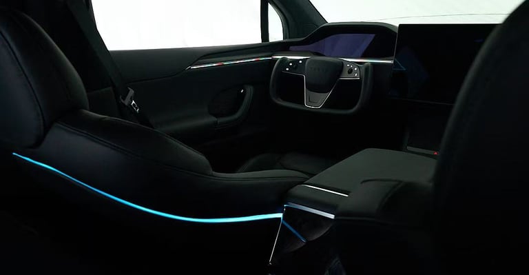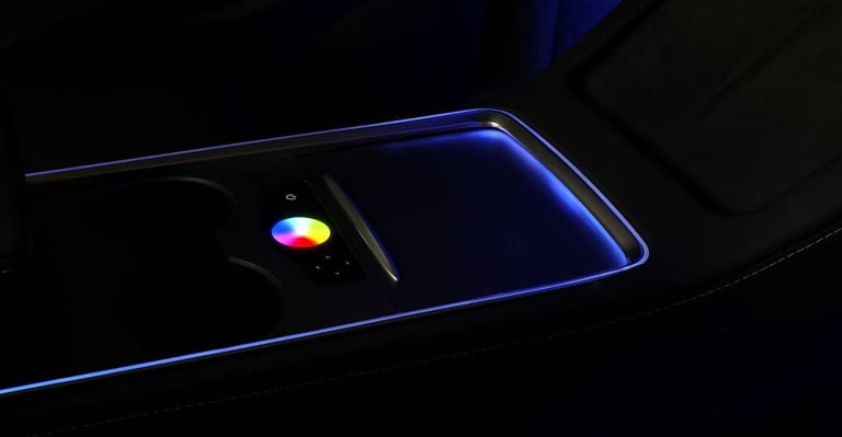 Transform your Tesla's interior into a vibrant sanctuary with our stunning ambient lighting system. Designed for seamless integration, the controller is conveniently located in the centre console, allowing you to effortlessly customise your driving experience. Whether you prefer a calming blue, a lively red, or a soft green, you have the power to select the exact colour that suits your mood. For those who enjoy a little spontaneity, you can also enable the random colour feature, letting a spectrum of hues dance through your vehicle's cabin. Elevate your Tesla to the next level and enjoy every drive surrounded by enchanting illumination that reflects your personal style.